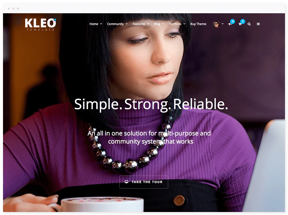 Need a community website? KLEO is definitely the solution to go with. You have an unique design and integration with BuddyPress and works like a charm with most BuddyPress compatible plugins.