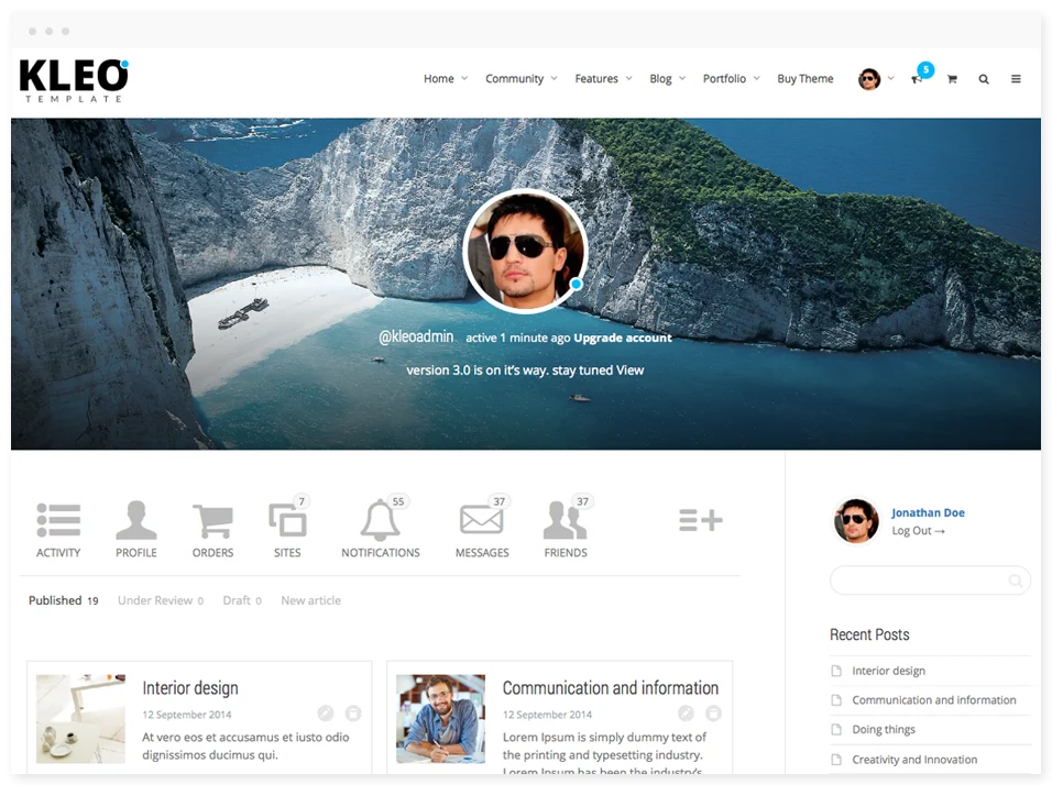 Need a community website? KLEO is definitely the solution to go with. See the member area that is part of the social functionality.